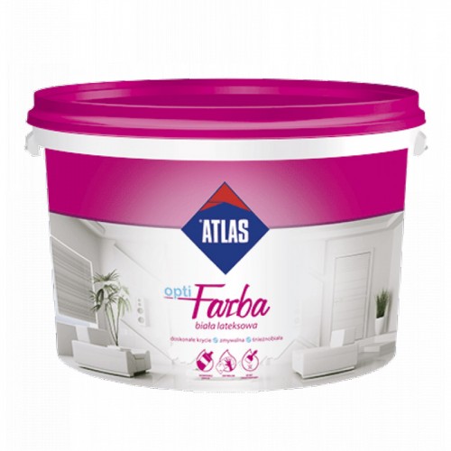 Латексна фарба optiFARBA ATLAS призначена для декоративного або захисного фарбування поверхонь стін і стель всередині будівель. Види  основ під фарбування: цементні та цементно-вапняны штукатурки, тонкошарові мінеральні штукатурки, гіпсові штукатурки та покриття, полімерні покриття, гіпсокартонні плити, паперові шпалери, неоштукатурені стіни з бетону, цегли, блоків, та пустотілих блоків.