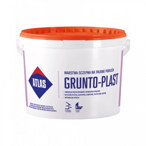 Грунтовка для складних основ ATLAS GRUNTO-PLAST - це готова до використання маса, що збільшує адгезію до основи (не менше 1,0 МПа до бетону) та до нових нанесених на основу шарів. Це ідеальна грунтовка для складних основ, що дозволяє застосовувати клеї, гідроізоляцію та інші матеріали таким чином, щоб можна було отримати відповідні технічні параметри, навіть на складних основах, таких як плити OSB, старі керамічні покриття, терраццо і т.п.